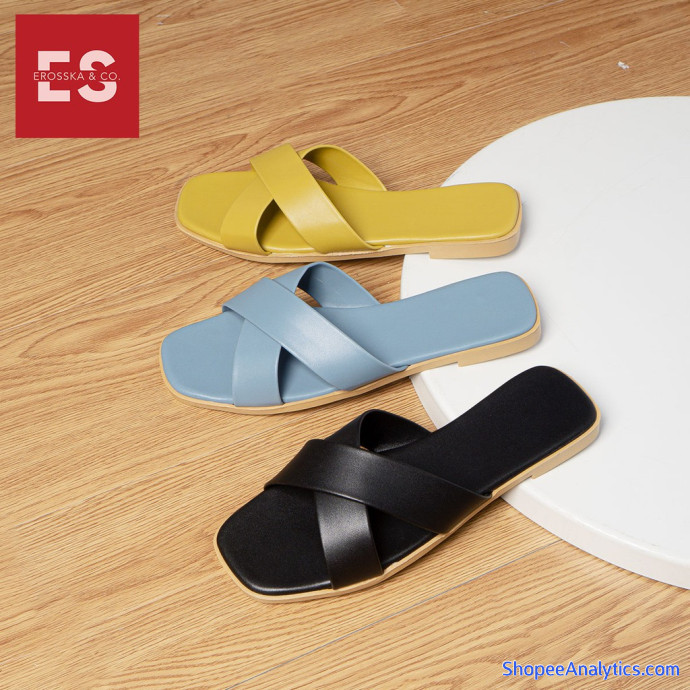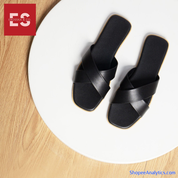 [Form bé tăng 1 size] Dép nữ đế bệt Erosska thời trang mũi vuông thiết kế phối dây quai chéo kiểu cơ bản cao 1cm màu đen _ DE029