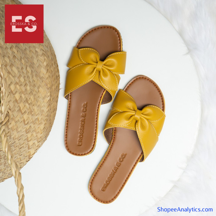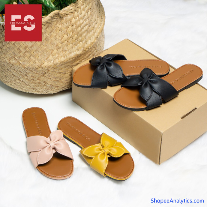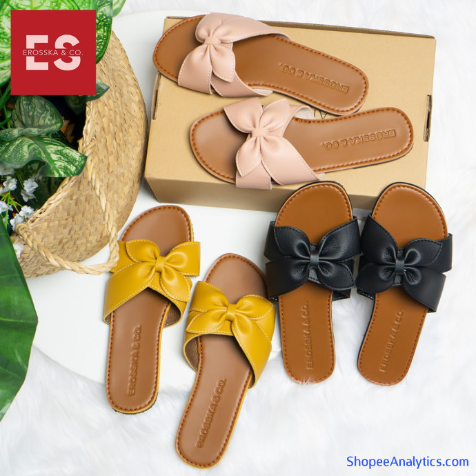 Dép nữ thời trang Erosska quai ngang đính nơ đế bệt màu đen - DE027
