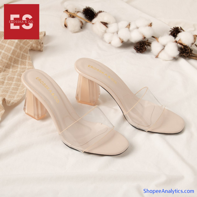 Dép cao gót quai trong Erosska thời trang mũi vuông gót trong kiểu dáng đơn giản cao 9cm màu đen _ EM040