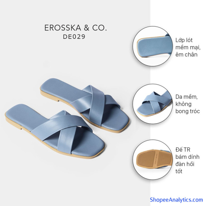 Dép nữ đế bệt quai chéo thời trang Erosska DE029