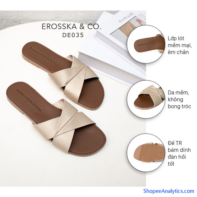 Tổng thể Dép đi biển thời trang Erosska 2021 siêu mềm êm chân màu đồng _ DE035 được đánh giá trung bình 4.85/5 điểm dựa vào 281 đánh giá qua 682 lượt mua hàng (Cập nhập ngày 27/09/2021).