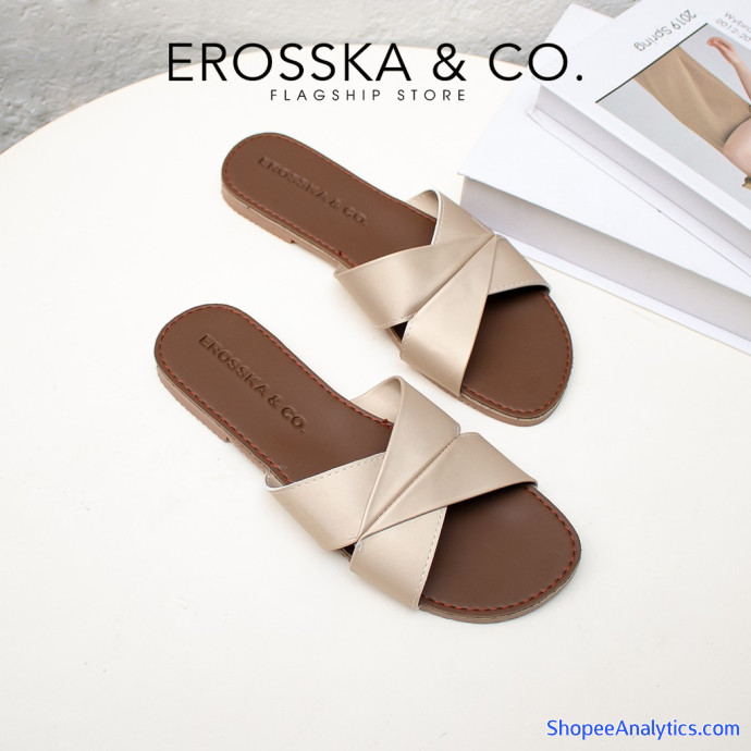 [Form bé tăng 2 size] Dép nữ thời trang Erosska quai ngang siêu mềm êm chân màu đồng _ DE035