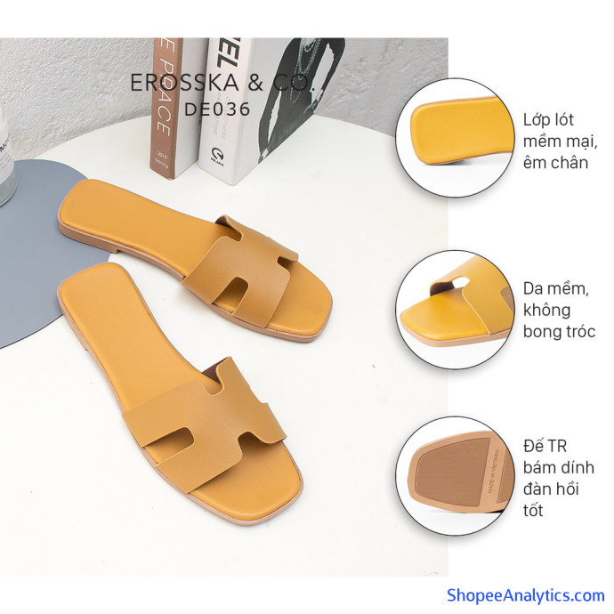 4. ĐẾ DÉP TPR CAO CẤP ĐÀN HỒI CAO, HẠN CHẾ TIẾNG ỒN: Dép đế bệt thời trang Erosska được làm bằng chất liệu TPR cao cấp theo tiêu chuẩn xuất khẩu, đảm bảo độ đàn hồi, mềm êm, hạn chế tiếng ồn phát ra khi di chuyển. Đặc biệt đế dép Erosska có độ BÁM DÍNH tốt, không trơn trượt.
