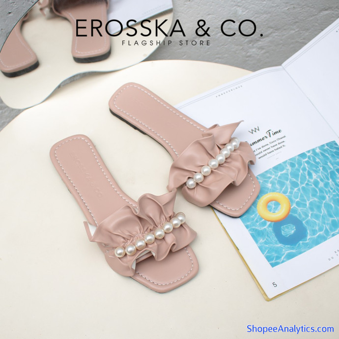 [Form bé tăng 1 size] Dép đi biển thời trang Erosska 2021 quai viền ren hạt ngọc màu nude - DE039