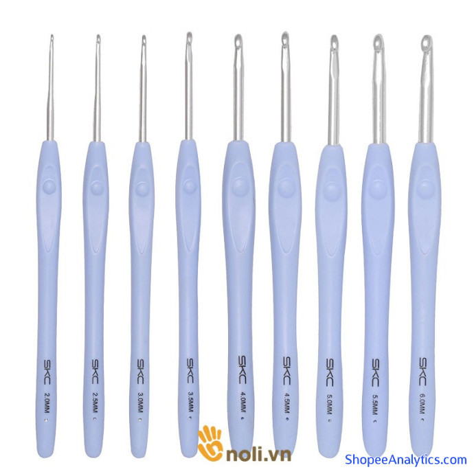 Kích thước kim móc cán dẻo SKC: 1.5mm, 2.0mm, 2.5mm, 3.0mm, 3.5mm, 4.0mm, 4.5mm, 5.0mm, 5.5mm, 6.0mm