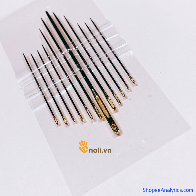 Vỉ kim khâu 12 cây có 1 cây kim khâu đại đầu tù, chị em có thể dùng để khâu ráp thú len. Những size kim khâu nhỏ hơn có thể khâu vải, quần áo vì đầu nhọn. Lỗ xỏ kim màu vàng sang trọng, kim khâu chắc chắn, khó gãy và không rỉ.