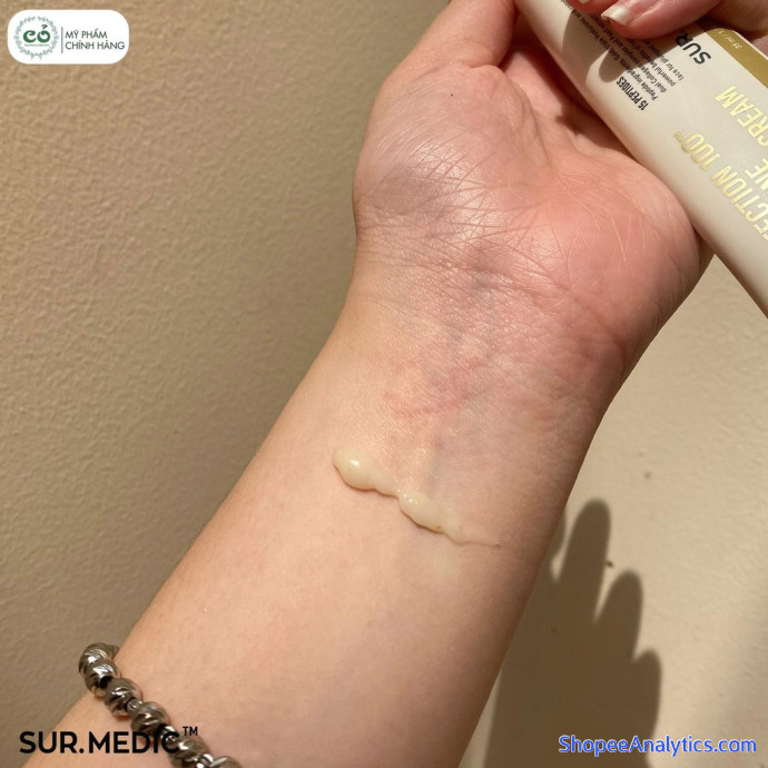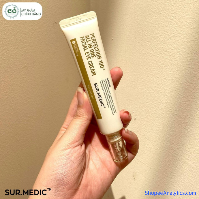 - Kem Dưỡng Chống Lão Hóa Cải Thiện Nếp Nhăn Vùng Mắt Sur.Medic Perfection 100 All In One Facial Eye Cream chứa thành phần tinh chất vàng tinh khiết có đặc tính hydrat hóa, làm săn chắc và giữ ẩm cho vùng da, giúp giảm nếp nhăn, trẻ hóa vùng da lão hóa một cách tự nhiên. Đồng thời giữ cho da săn chắc bằng cách duy trì collagen trong da và ngăn chặn hình thành sắc tố Melanin giúp vùng da mắt trở nên sáng mịn tự nhiên