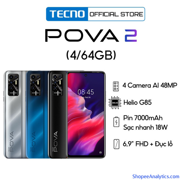 Tecno Official Store chính thức mở bán sản phẩm điện thoại Tecno Gaming Pova 2 (6GB+64GB) lần đầu tiên có mặt tại Shopee.