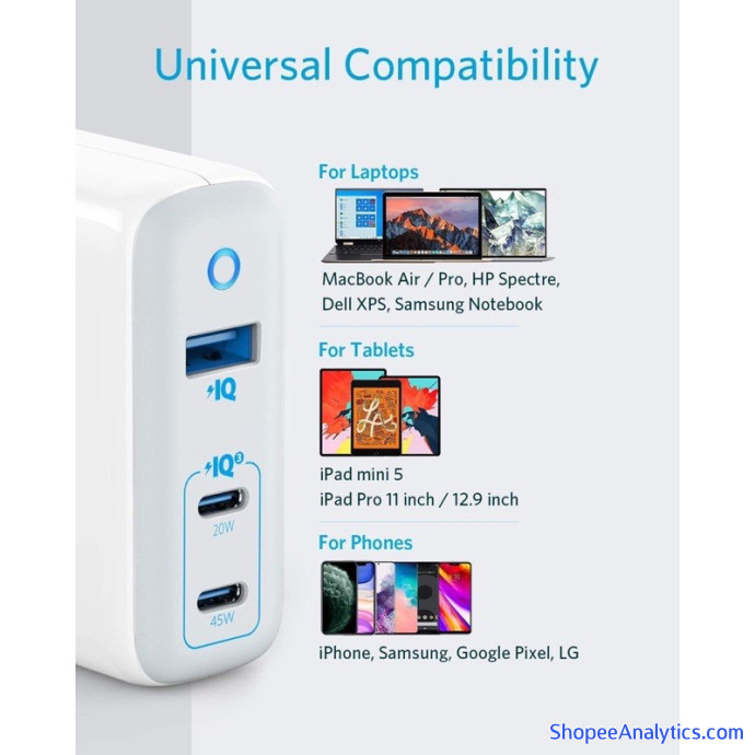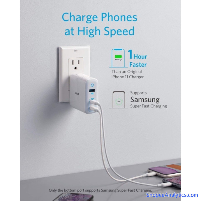 Hai cổng USB-C hỗ trợ PowerIQ 3.0 cung cấp khả năng sạc tốc độ cao cho các thiết bị của bạn. Sử dụng cổng 45W để sạc MacBook hoặc máy tính xách tay khác của bạn và sử dụng cổng 20W để sạc máy tính bảng và điện thoại ở tốc độ cao.