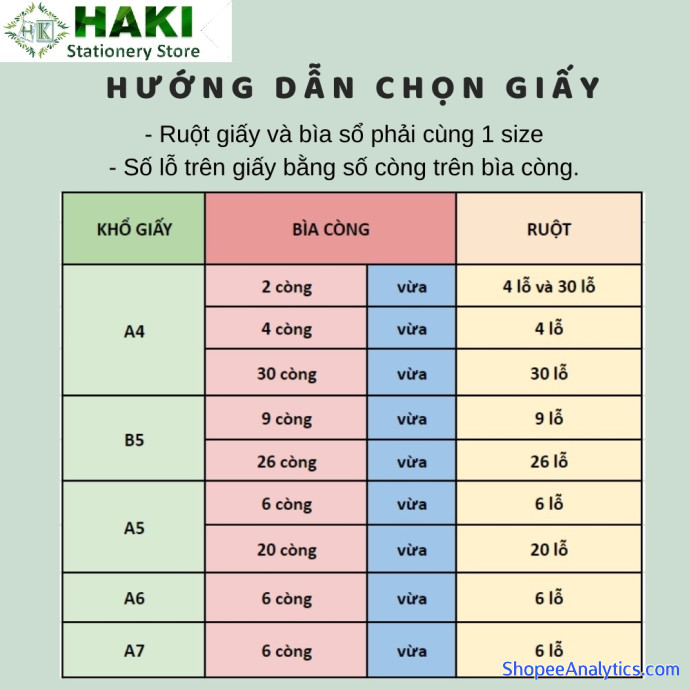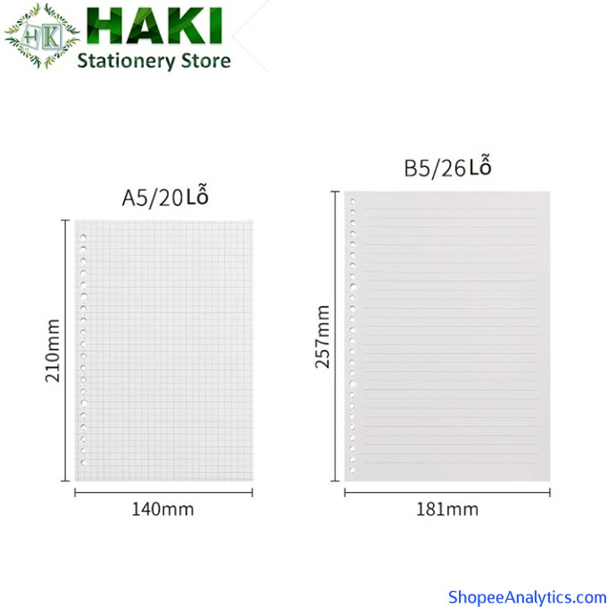 Thông Tin Sản Phẩm: Ruột sổ còng giấy refill HAKI 20 26 30 lỗ A5 B5 A4 sổ planner bullet journal