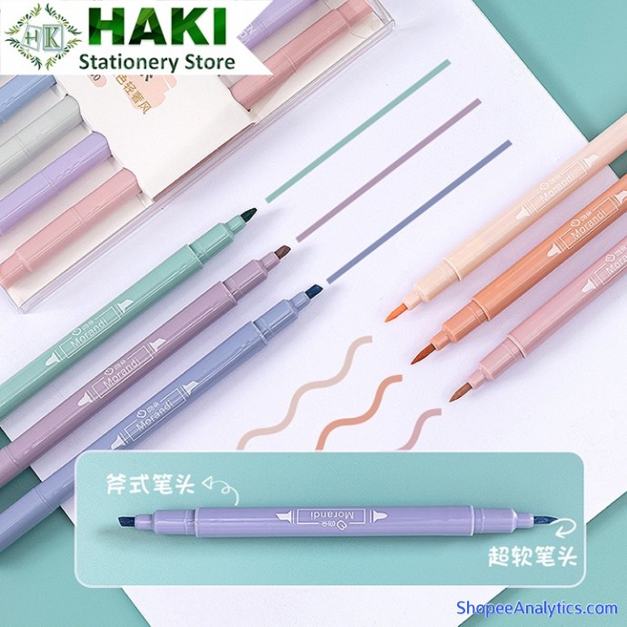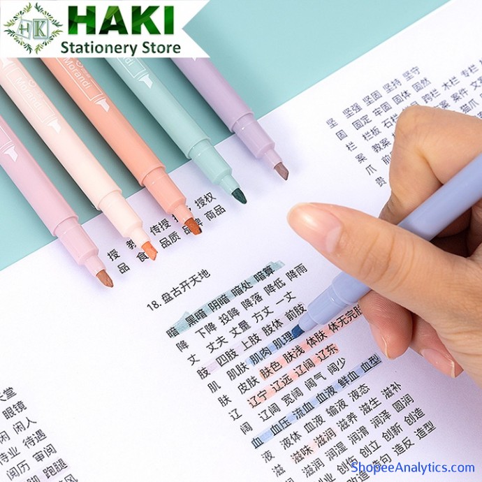 Giới thiệu sản phẩm: Bút highlight pastel 2 đầu morandi HAKI, bút đánh dấu nhớ dòng dạ quang cute nhiều màu marker dễ thương