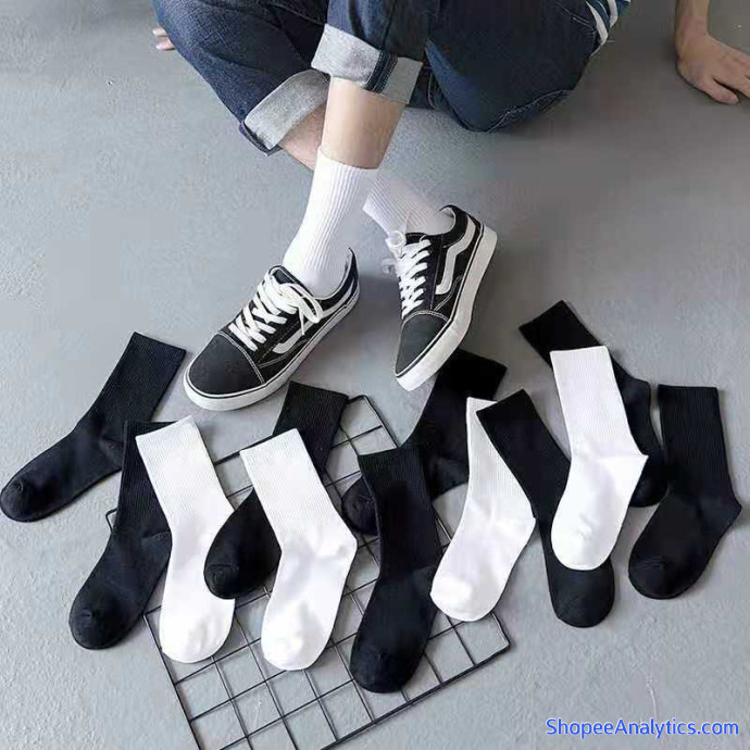 Hướng dẫn sử dụng tất cao cổ nam nữ phong cách Vintage Hàn Quốc, vớ cao cổ nữ nam trắng đen XL7998