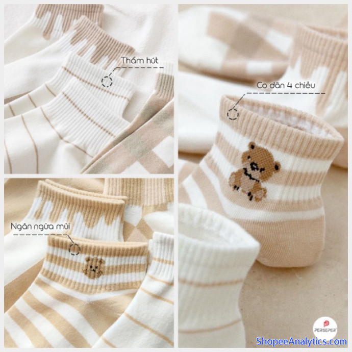 Tổng thể Tất nữ vớ nữ cổ ngắn set 5 đôi họa tiết cute dễ thương phong cách Hàn Quốc kèm túi được đánh giá trung bình 4.99/5 điểm dựa vào 223 đánh giá qua 455 lượt mua hàng (Cập nhập ngày 08/10/2021).