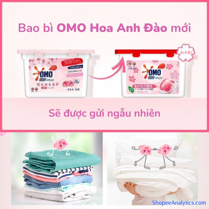 Thông tin về sản phẩm viên giặt xả quần áo OMO nước hoa hương hoa anh đào :
