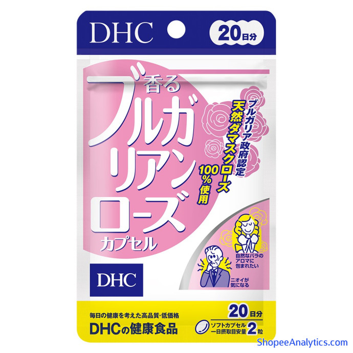 Mỗi ngày 2 viên uống hoa hồng DHC, nếu quy đổi thành hoa tươi thì tương đương 28 bông. Mỗi gói hoa hồng DHC tương đương 850 bông. Ngoài ra sản phẩm còn được bổ sung thêm Vitamin E hỗ trợ trẻ hóa làn da. Sản phẩm hỗ trợ đắc lực cho những bạn tự ti về mùi cơ thể hoặc mùi hơi thở, nhưng lại ngại dùng nước hoa. Sản phẩm không chỉ cung cấp hương hoa hồng từ bên trong cơ thể và còn giúp bổ sung Vitamin E làm đẹp.