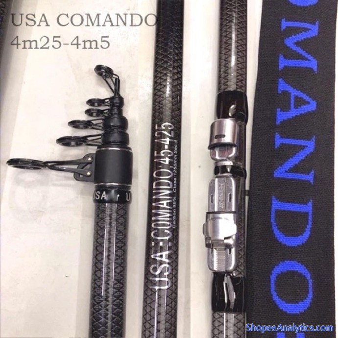 Tổng thể [Hàng loại 1] cần câu lục xa bờ Comando USA 4m25 và 4m5 Hàng loại 1 cần tải cá 20kg y hình xả kho được đánh giá trung bình 4.70/5 điểm dựa vào 133 đánh giá qua 1,321 lượt mua hàng (Cập nhập ngày 17/10/2021).