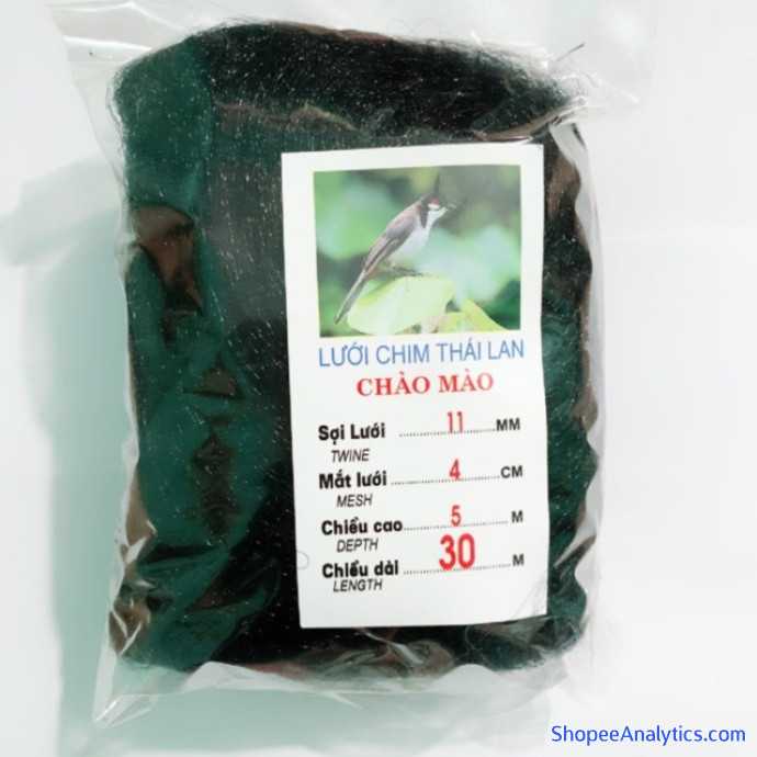 Tổng thể Lưới Bắt Chim dài 30m hàng loại 1 bắt CHÀO MÀO, CHÒE, MI, KHỨU, SÁO, cu gáy giá siêu rẻ - được đánh giá trung bình 4.83/5 điểm dựa vào 40 đánh giá qua 574 lượt mua hàng (Cập nhập ngày 25/09/2021).