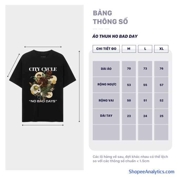 2. Áo thun tay lỡ No Bad Day giống 100% với mô tả thông tin sản phẩm mà City Cycle đã đăng.