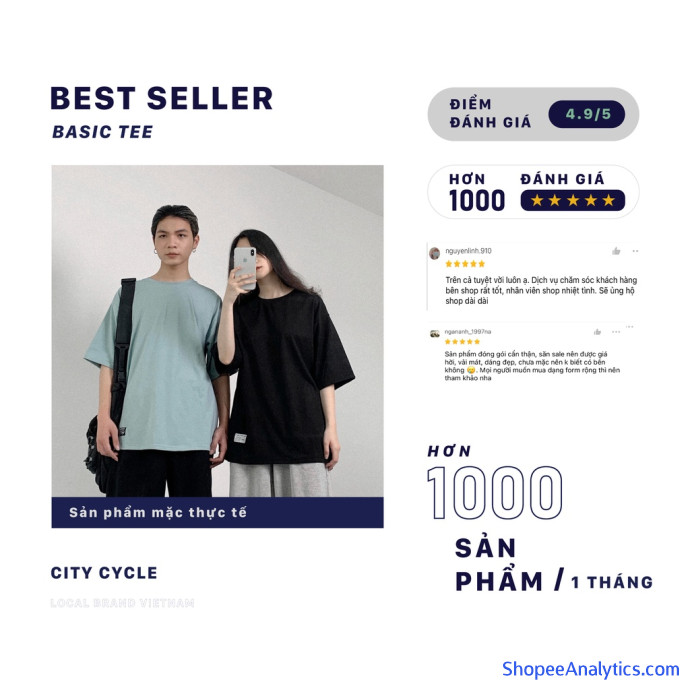 Tổng thể Full Box Áo thun nam nữ Basic Tee City Cycle - Áo thun tay lỡ Unisex form rộng Local Brand được đánh giá trung bình 4.94/5 điểm dựa vào 1,214 đánh giá qua 2,993 lượt mua hàng (Cập nhập ngày 18/10/2021).