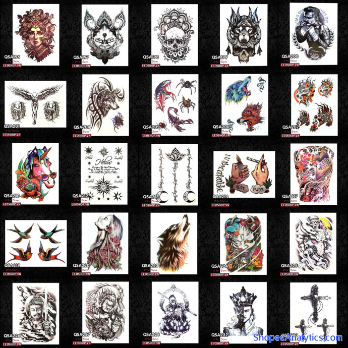 Tổng thể Hình Xăm Dán Tay, Ngực, Vai (Tổng Hợp QSA - 21x15cm) được đánh giá trung bình 4.83/5 điểm dựa vào 210 đánh giá qua 1,837 lượt mua hàng (Cập nhập ngày 04/10/2021).