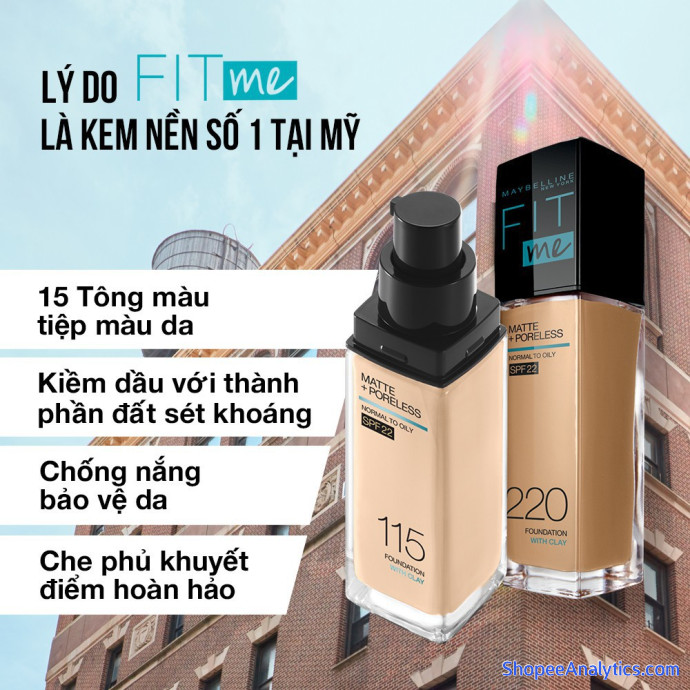 - Kem Nền Fit Me Maybelline New York Matte Poreless Foundation (30ml) gây ấn tượng với khả năng kiềm dầu cho lớp nền mịn lì tự nhiên, đồng thời che phủ tốt mọi khuyết điểm trên bề mặt da và che phủ hoàn hảo lỗ chân lông.