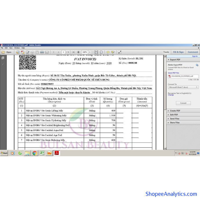 Tổng thể Mặt nạ BNBG Vita Genic Lifting Jelly Mask được đánh giá trung bình 4.98/5 điểm dựa vào 1,020 đánh giá qua 9,341 lượt mua hàng (Cập nhập ngày 07/10/2021).