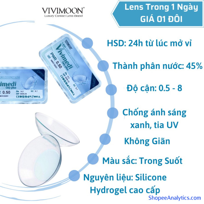 - Dòng lens 1 ngày trong suốt của VIVIMOON cực tự nhiên và thật mắt, vừa giúp các cô nàng cận thị thoát khỏi cặp kính nặng nề, vừa khiến đôi mắt "có hồn" hơn. Các chàng trai thể dục thể thao cũng có thể yên tâm sử dụng lens mà không lo bị bàn tán nha.