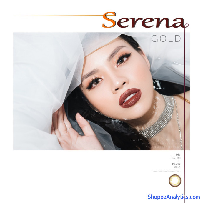 - Kính áp tròng SERENA GOLD là dòng lens vân nhũ kim tuyến phiên bản giới hạn của Vivimoon. Nền choco tự nhiên được phủ lên một lớp nhũ vàng gold kiêu hãnh và ma mị. Chỉ cần đảo ánh mắt, sự lấp lánh sẽ khiến cả thế giới nín thở vì bạn!