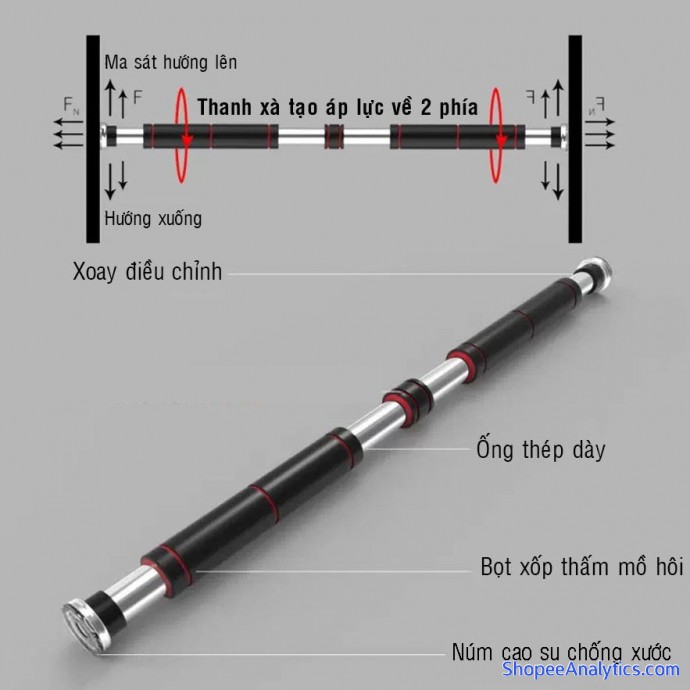 ✔️Xà đơn dễ tháo lắp, chịu tải lớn lên tới 100 kg.