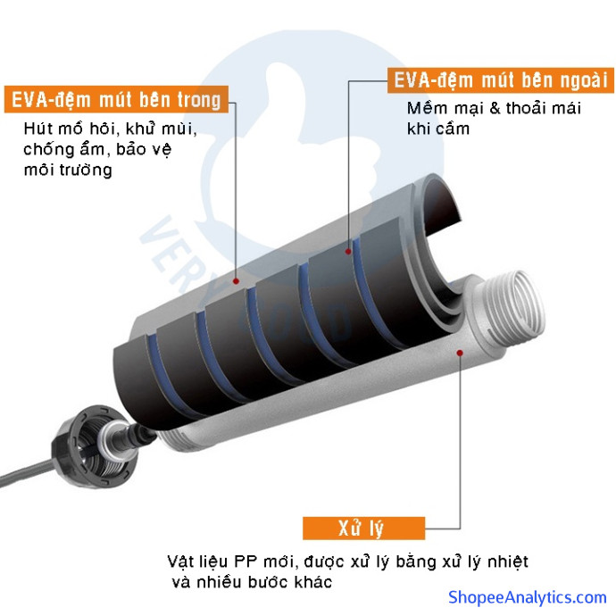 🍄Chất liệu: dây làm bằng sợi PVC CÓ LÕI THÉP và tay cầm làm bằng nhựa PP và mút