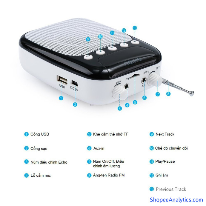 Máy trở giảng chính hãng Shidu SD-S358 có chức năng FM hỗ trợ tần số 87.5 đên 108 Mhz (hỗ trợ các đài FM ở Việt Nam : VOV giao thông, VOV1, VOV2, VOV3...). Có khe cắm USB, khe thẻ TF giúp bạn phát âm thanh, nghe nhạc trực tiếp từ USB, thẻ nhớ (Hỗ trơ thẻ 16GB)