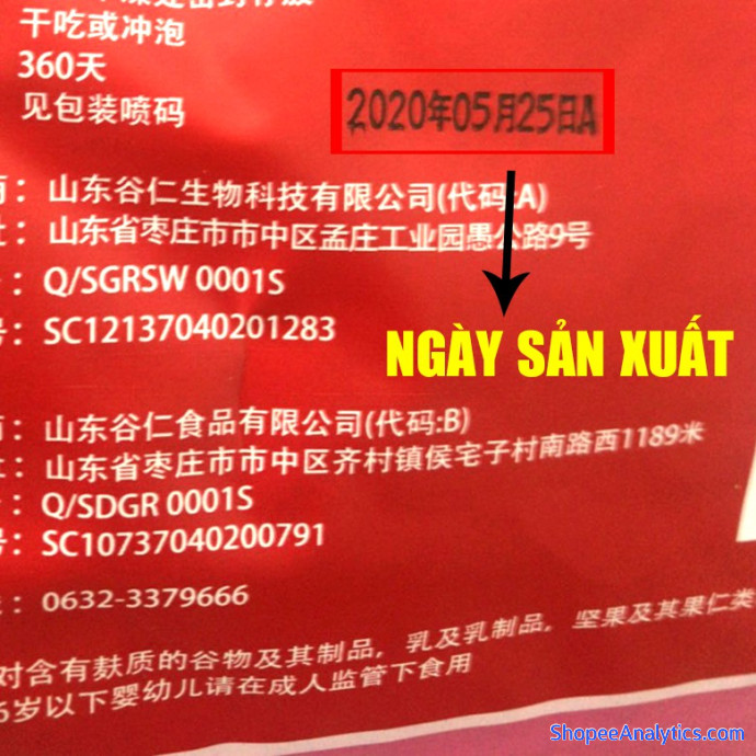 NGÀY SẢN XUẤT IN TRÊN BAO BÌ - HẠN SỬ DỤNG: 360 NGÀY