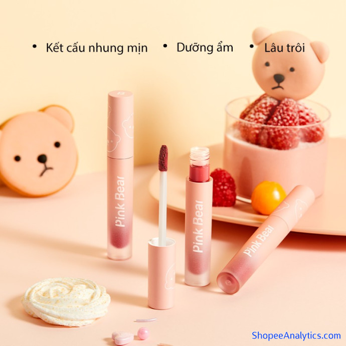 Tổng thể Son kem Pink Bear màu nhung lì lâu trôi bền màu gồm 8 màu tùy chọn 2.5g được đánh giá trung bình 5.00/5 điểm dựa vào 25 đánh giá qua 72 lượt mua hàng (Cập nhập ngày 17/10/2021).