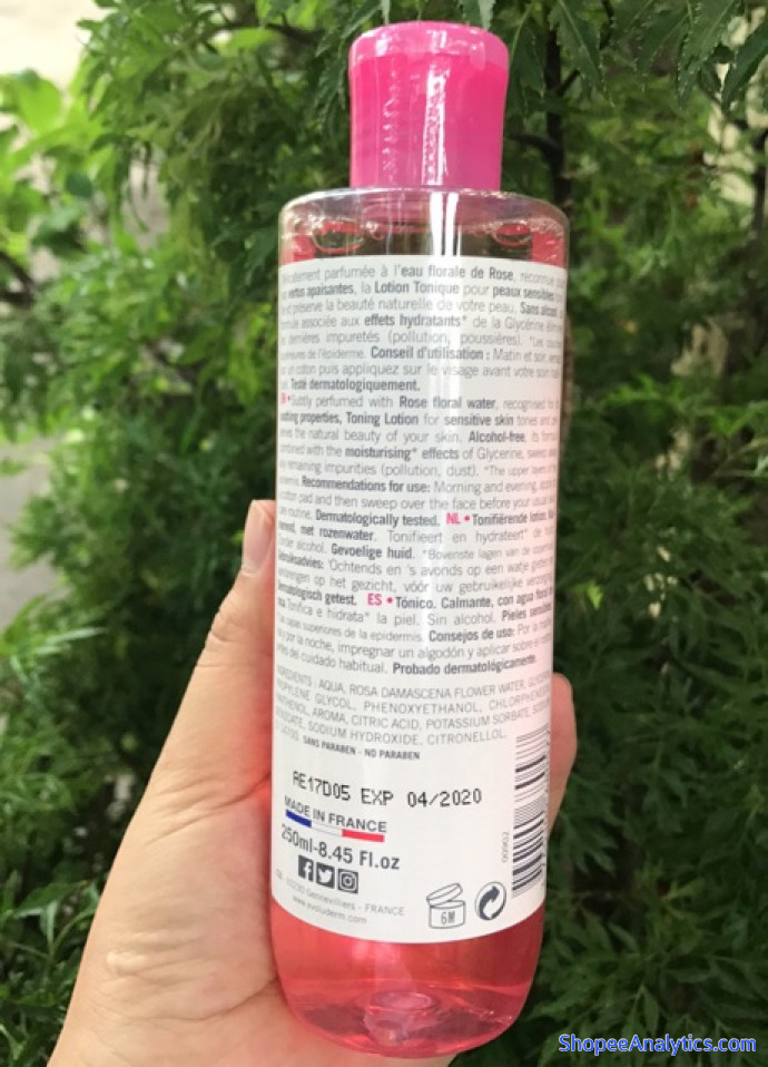 * Thành phần chính: Nước tách khoáng, nước hoa hồng, glycerin, propy glycol, ure, kathon, các dạng mùi hương…