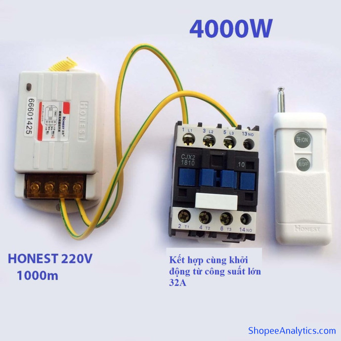 Đây là công tắc điều khiển từ xa chuyên dụng để bật tắt các thiết bị đòi hỏi công suất lớn hoặc cường độ dòng khởi động lớn khi nó có thể chịu tải tới 5000W (40A). Bạn có thể sử dụng công tắc điều khiển từ xa công suất lớn Honest HT-6220 này để bật tắt máy bơm (3000w), bình nước nóng, các ứng dụng motor có dòng khởi động <40A…