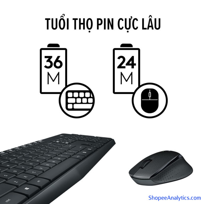 Tuổi thọ pin: 36 tháng (bàn phím) và 24 tháng (chuột)