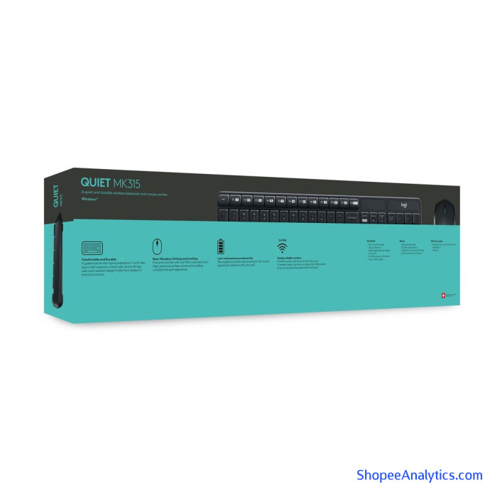 Tổng thể Bộ bàn phím và chuột không dây Logitech MK315 - Silent giảm 99% tiếng ồn được đánh giá trung bình 4.78/5 điểm dựa vào 306 đánh giá qua 823 lượt mua hàng (Cập nhập ngày 07/09/2021).