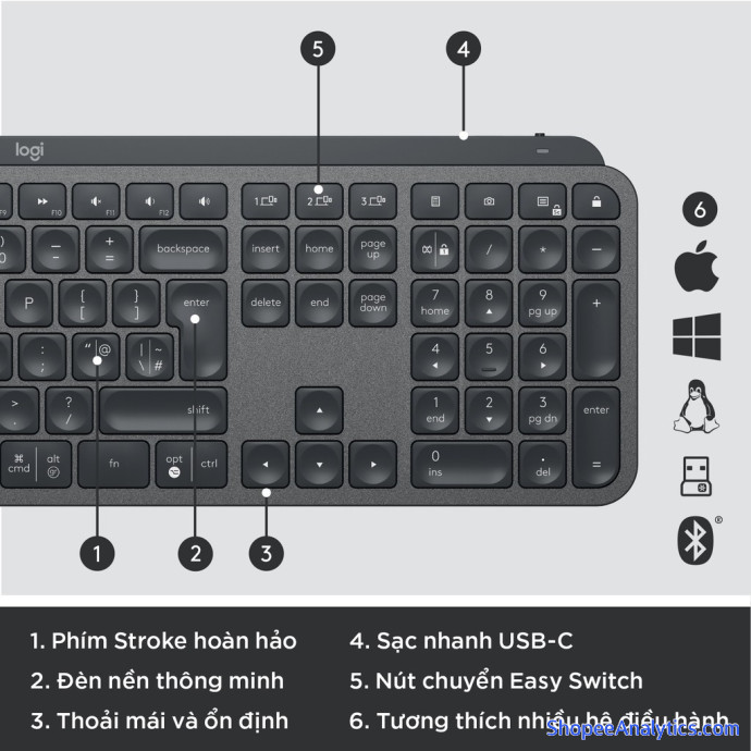 - Đa thiết bị & đa nền tảng: MX Keys tương thích với các hệ điều hành Windows, Mac, Linux, iOS và Android