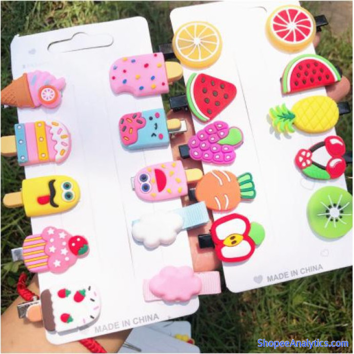 SET 10 Kẹp tóc Hàn Quốc trái cây, hoạt hình, hoa, kem, công chúa.. xinh ngất ngây cho bé gái.