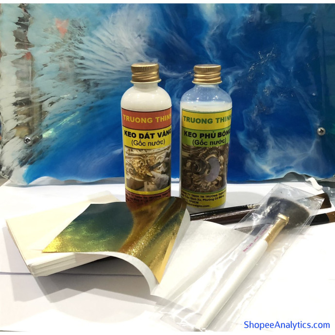 - Sản phẩm dùng kèm: keo dát gốc PU, keo dát gốc nước, phủ bóng 24K , bút vẽ, chổi vệ sinh vàng.