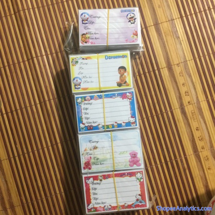 Sản phẩm nhãn vở hoạt hình siêu đẹp, siêu dễ thương, hình doreamon và các nhân vật hoạt hình khác, sản phẩm gồm 100cái (10túi x10 cái/túi)