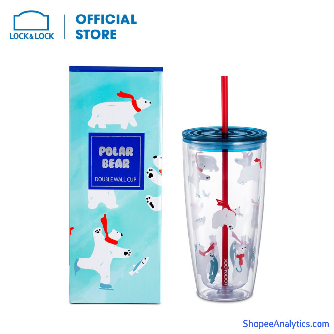 Ly nhựa 2 lớp có ống hút Lock&Lock, 750ml - Màu Xanh nước biển HAP507BLU