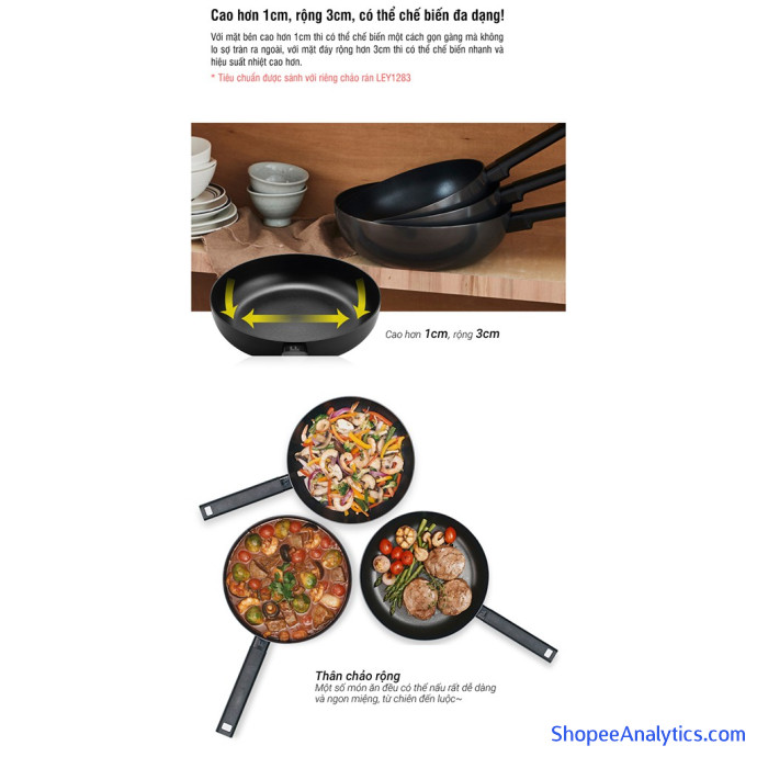 Với mặt bên cao thì có thể chế biến một cách gọn gàng mà không lo sợ tràn ra ngoài, với mặt đáy rộng thì có thể chế biến nhanh và hiệu suất nhiệt cao hơn.