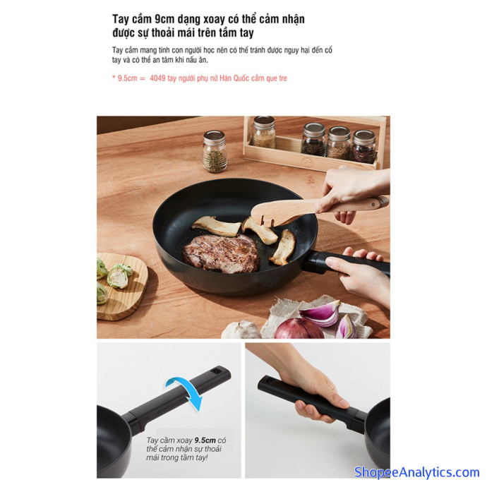 Tay cầm mang tính con người học nên có thể tránh được nguy hại đến cổ tay và có thể an tâm khi nấu ăn.