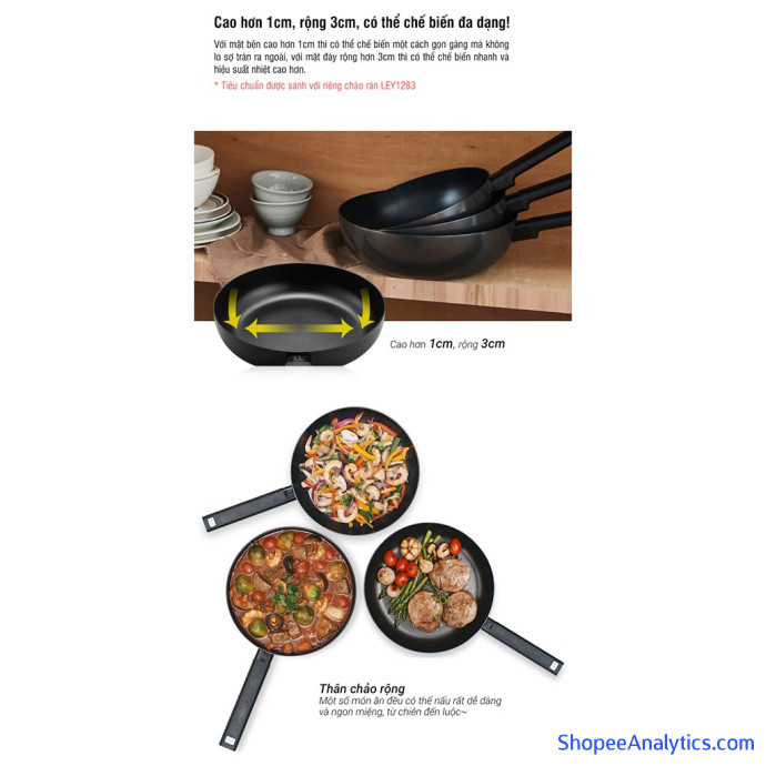 Với mặt bên cao thì có thể chế biến một cách gọn gàng mà không lo sợ tràn ra ngoài, với mặt đáy rộng thì có thể chế biến nhanh và hiệu suất nhiệt cao hơn.