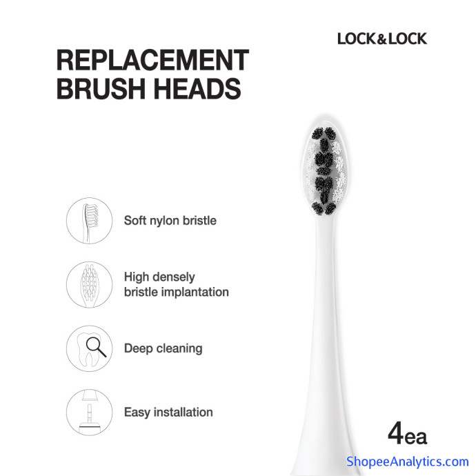 Sản phẩm gồm 04 đầu bàn chải dùng để thay thế cho Bàn chải đánh răng điện Lock&Lock sạc không dây ENR346 (màu trắng & màu đen)