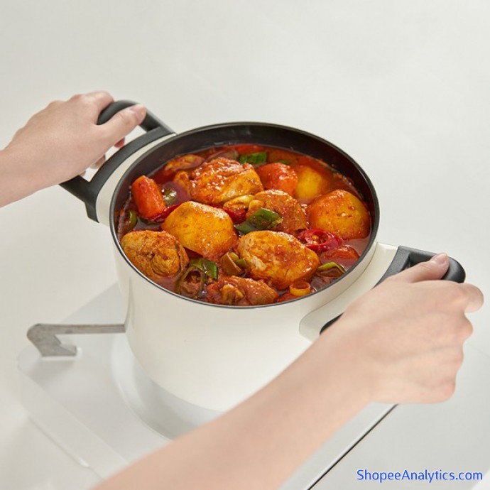 - Thiết kế tay cầm 2 bên rộng và vững chắc giúp tránh xa lửa mang lại cảm giác thoải mái và an toàn cho người cầm mà không cần găng tay làm bếp.