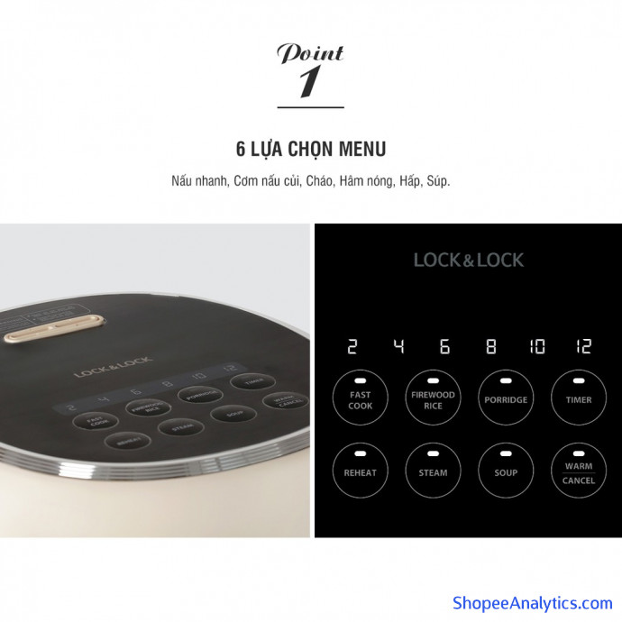 6 lựa chọn menu: nấu nhanh, nấu củi, cháo, hâm nóng, hấp, súp