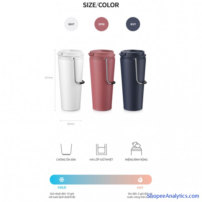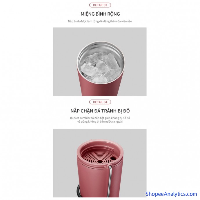 - Bucket Tumbler có nắp bật giúp bạn dễ dàng uống mà không bị bắn nước ra ngoài