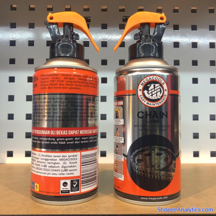 Tổng thể MegaCools Chainlube xịt dưỡng sên chính hãng 300ml , vòi xịt kiểu mới tiện dụng cho mọi loại xe. DoChoiXeMay được đánh giá trung bình 4.87/5 điểm dựa vào 743 đánh giá qua 2,327 lượt mua hàng (Cập nhập ngày 20/08/2021).